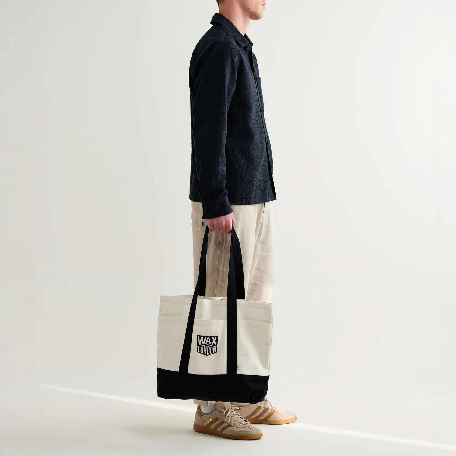 WAX LONDON Truman Tote Bag in Ecru/Navy