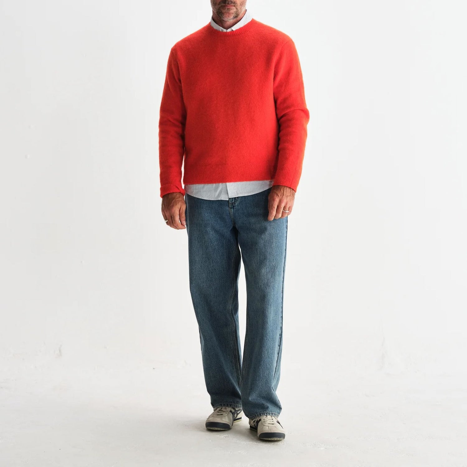 Cool, comfy and made for everyday living. Cut for a relaxed fit, this version is crafted from a warm wool blend to create this classic soft, brushed teal colourway. It is finished with a ribbed neckband, hem and cuffs - it’s a staple for any wardrobe.