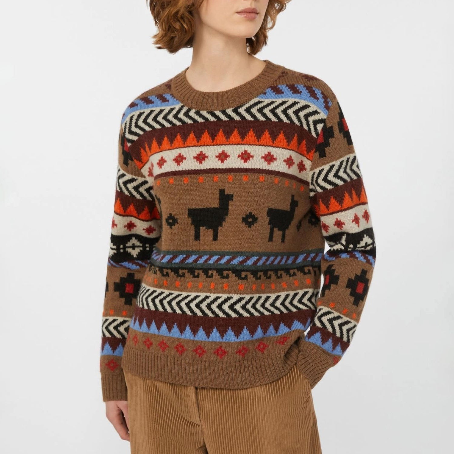 A refined staple with a tactile twist, this crew-neck jumper is crafted from a luxurious wool and alpaca blend, offering softness, warmth, and subtle texture. The all-over jacquard knit creates a striking contrast pattern, adding depth and character to a classic silhouette.