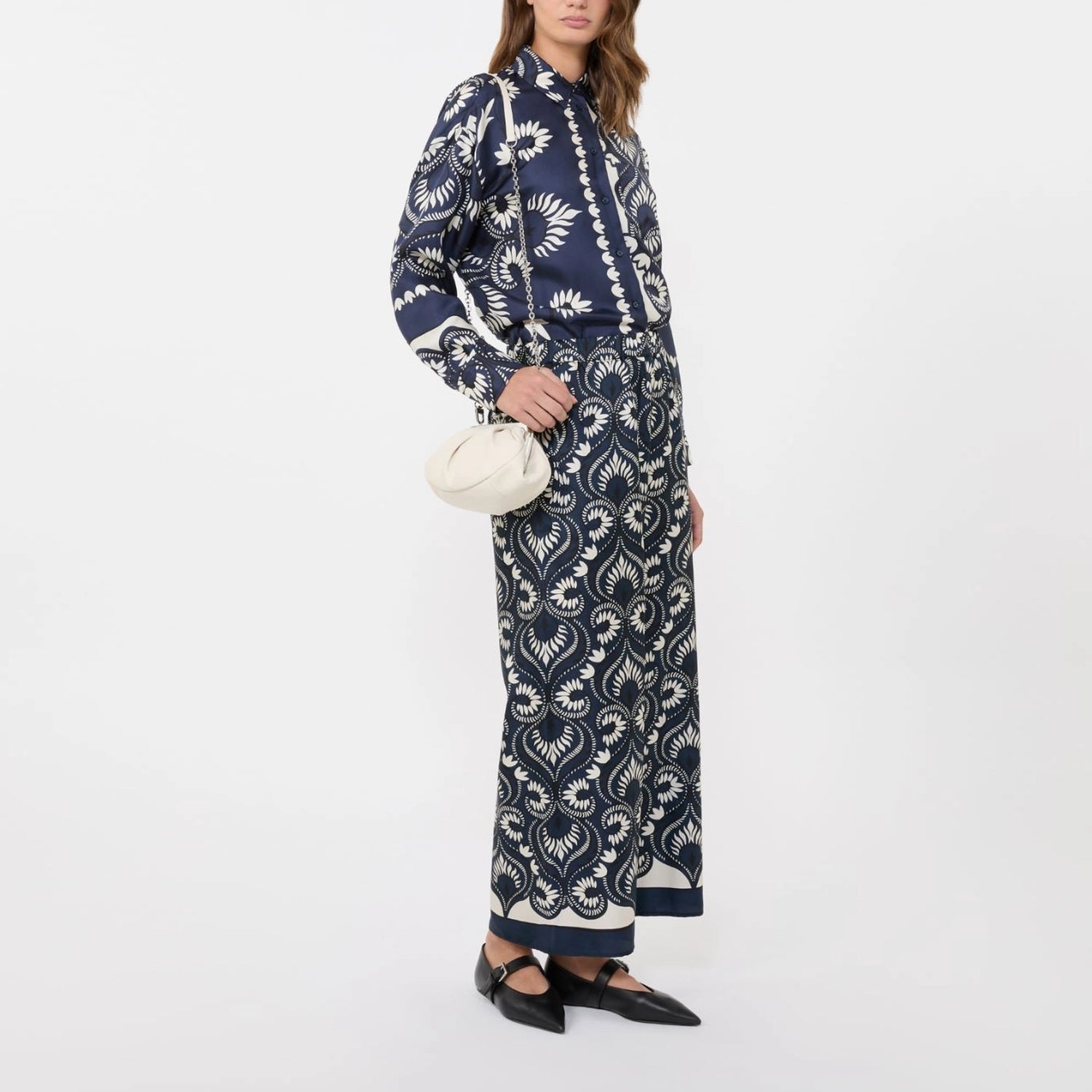 WEEKEND MAX MARA WKDLastra Printed Silk Patchwork Shirt in Navy