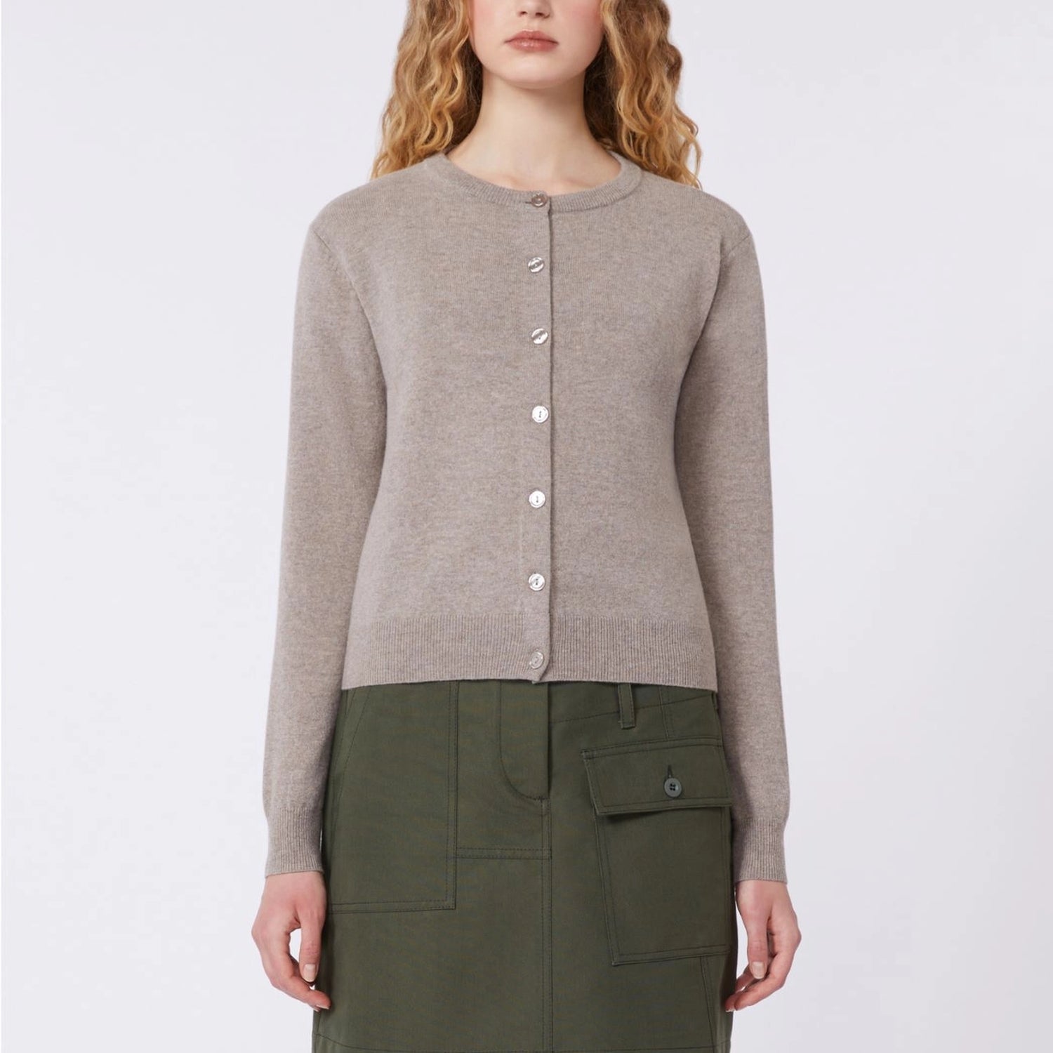 A cosy wardrobe essential, this crew-neck cardigan is crafted from a soft wool and cashmere blend for warmth and comfort. Designed in a relaxed, waist-length fit, it features long set-in sleeves and rib-knit trims for a clean, classic finish. Front button closure completes the timeless, versatile design.