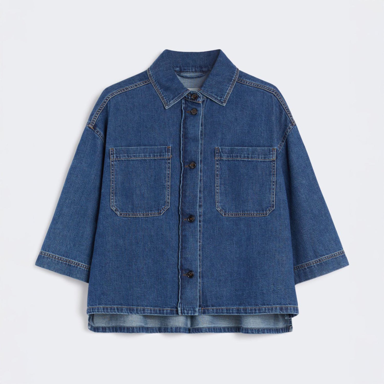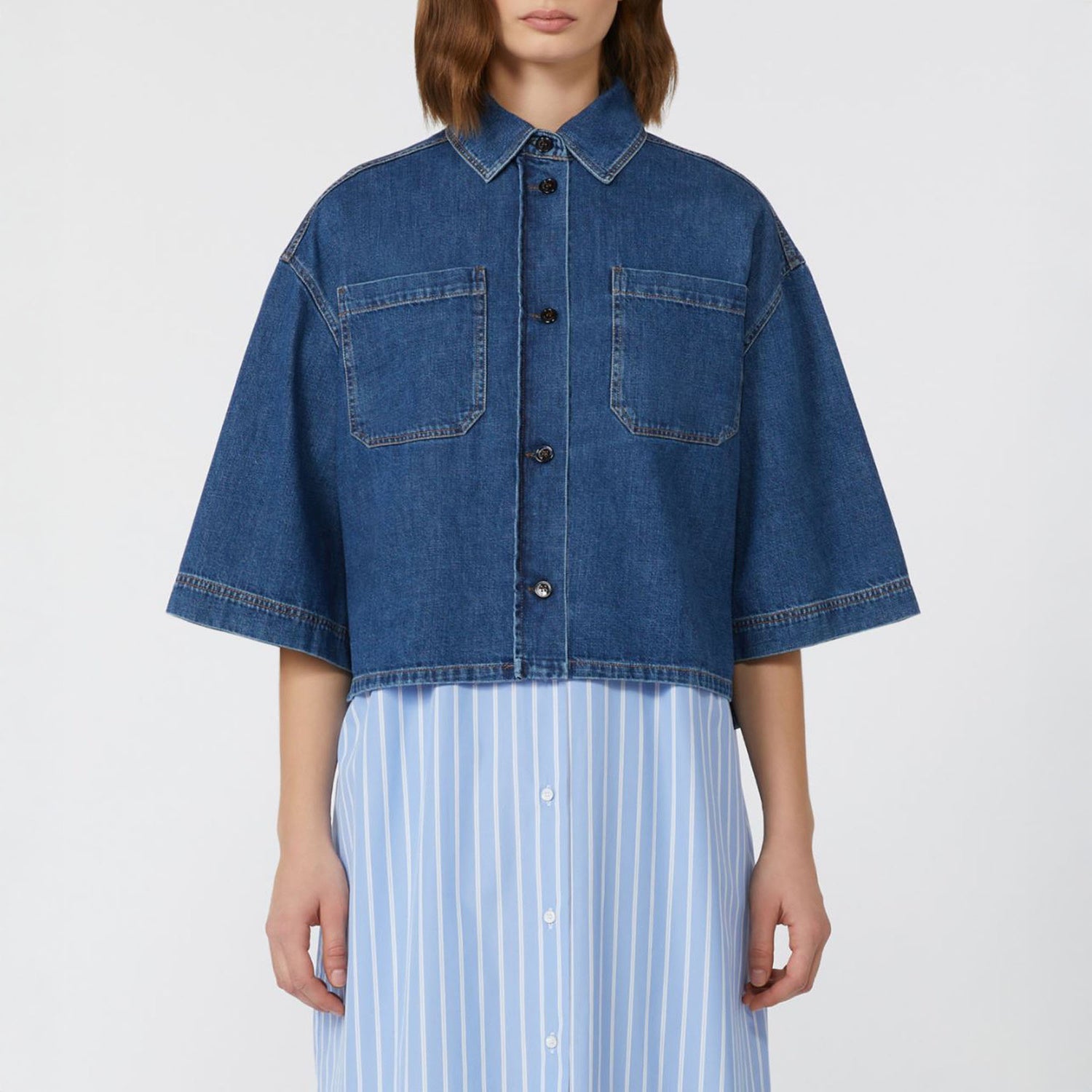 WEEKEND MAX MARA Enza Denim Cropped Shirt in Navy