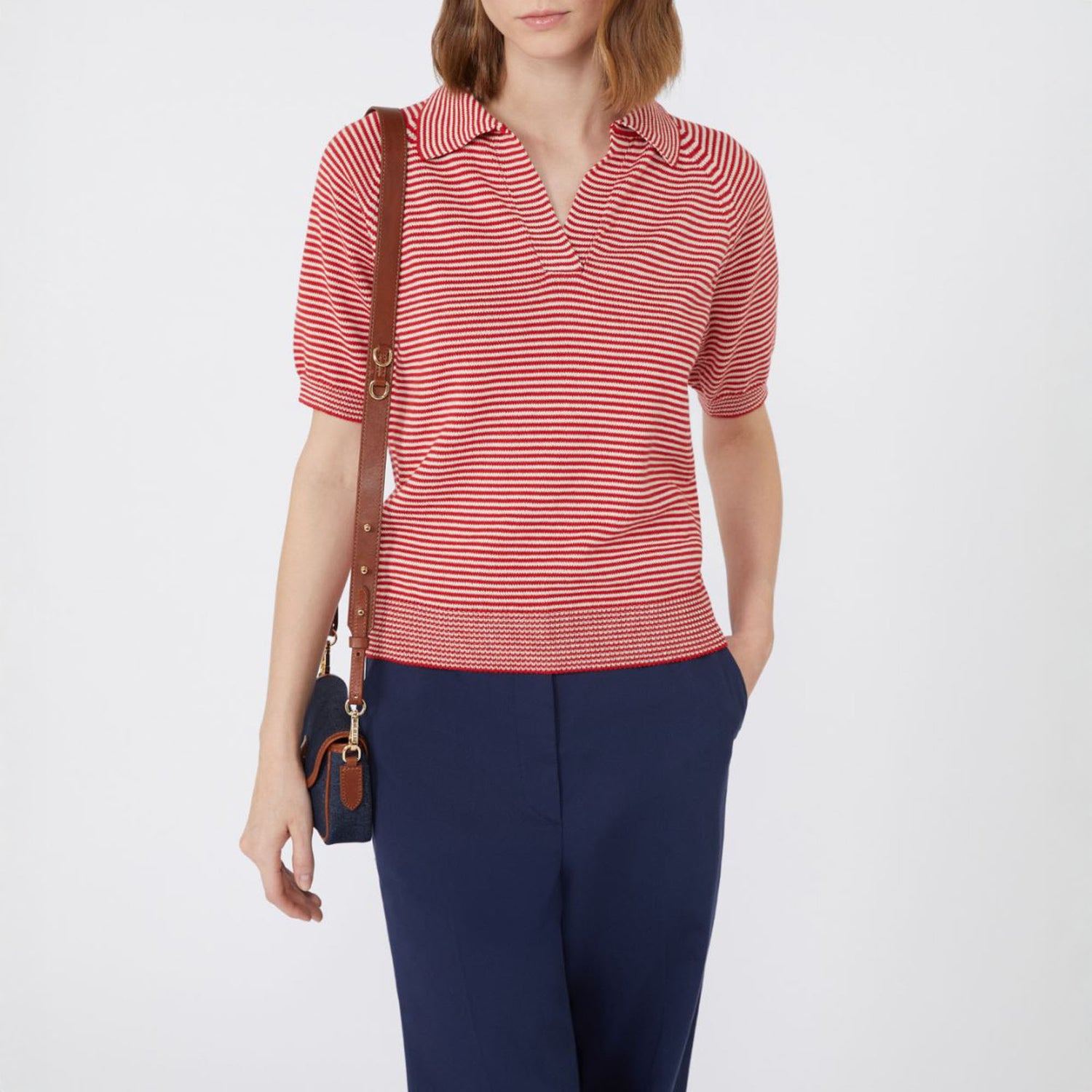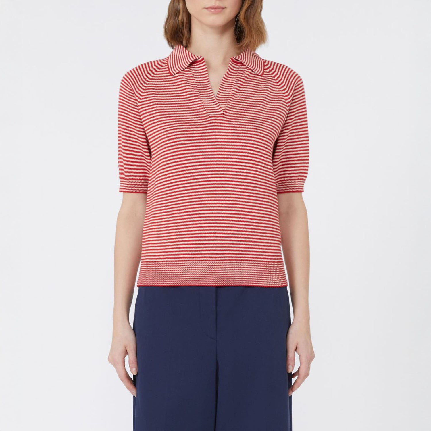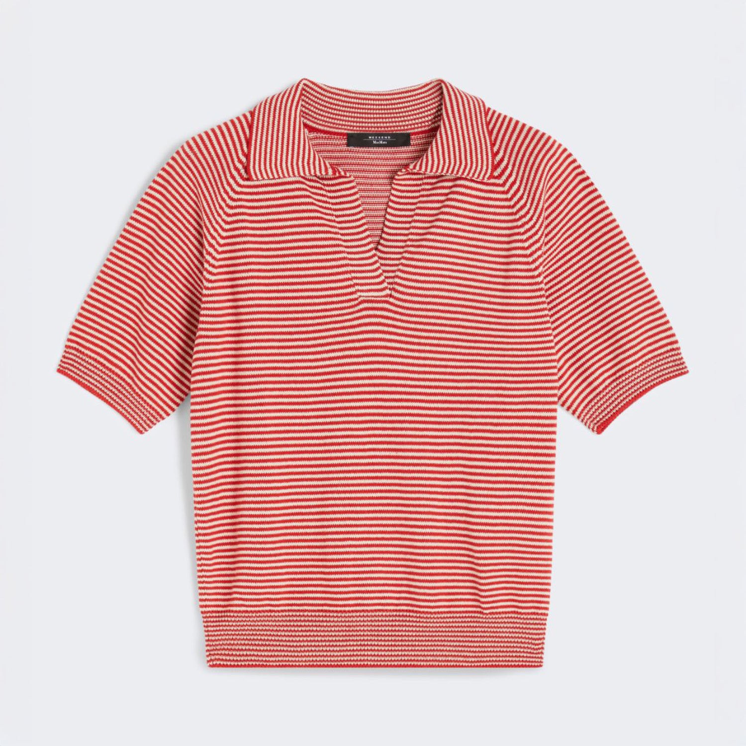 WEEKEND MAX MARA Junior Cotton Yarn Polo Shirt in Red Stripe
