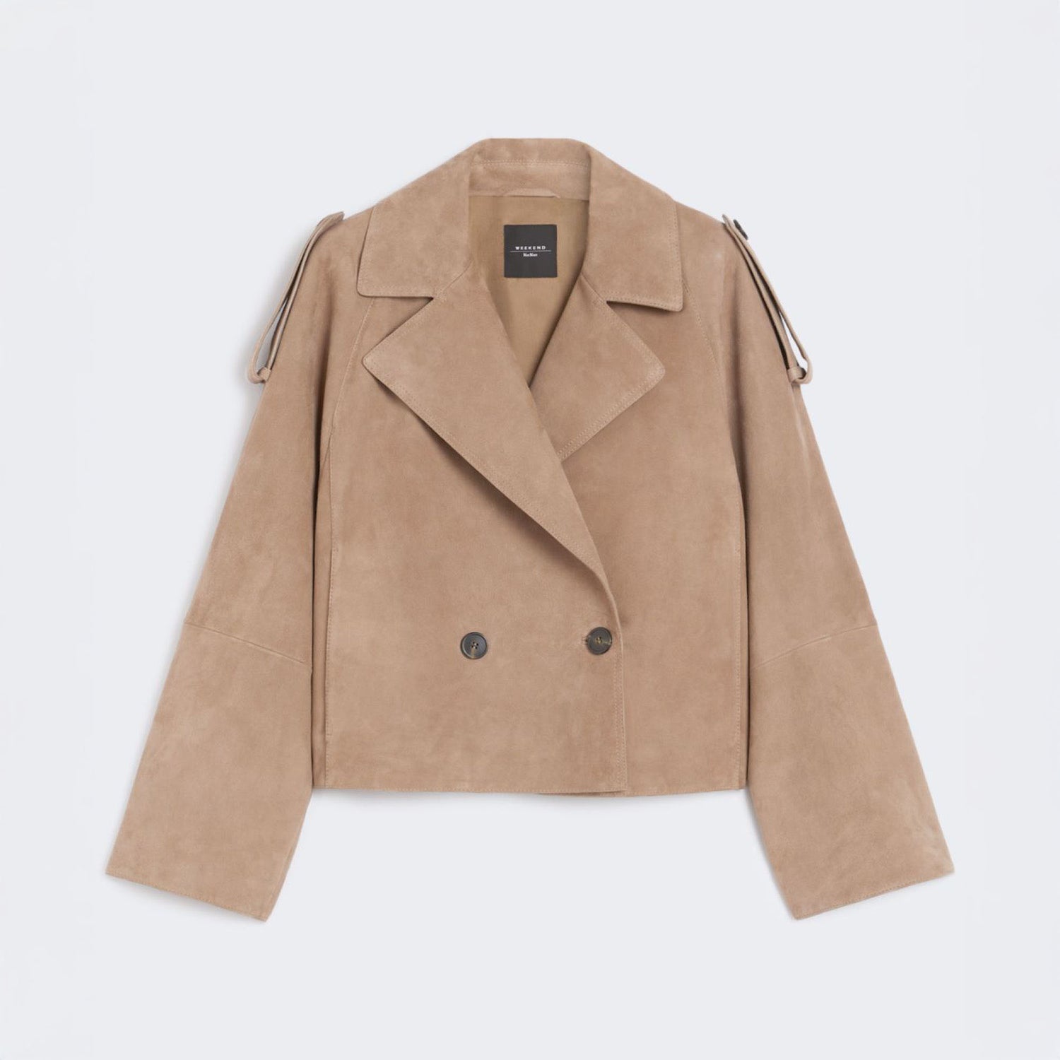 WEEKEND MAX MARA Maga Short Suede Trench Coat in Marron Glace