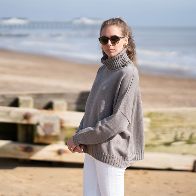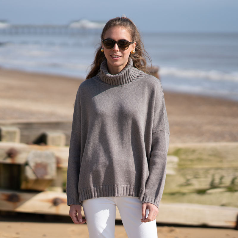 COLLEN & CLARE Zuri Cotton Roll Neck in Cappuccino