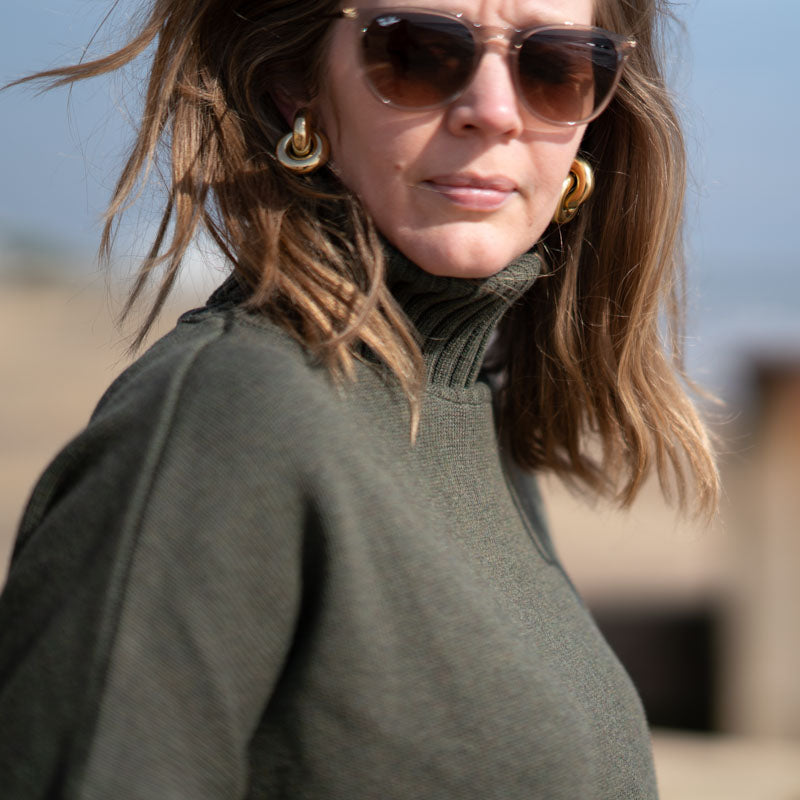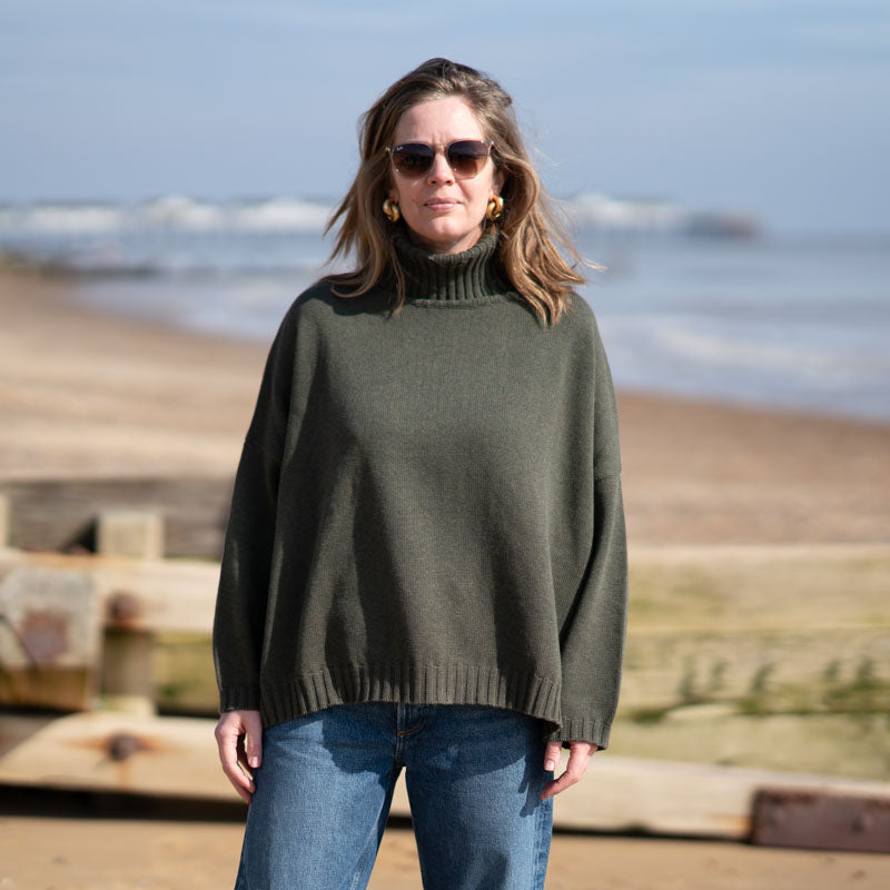 COLLEN & CLARE Zuri Cotton Roll Neck in Dark Olive
