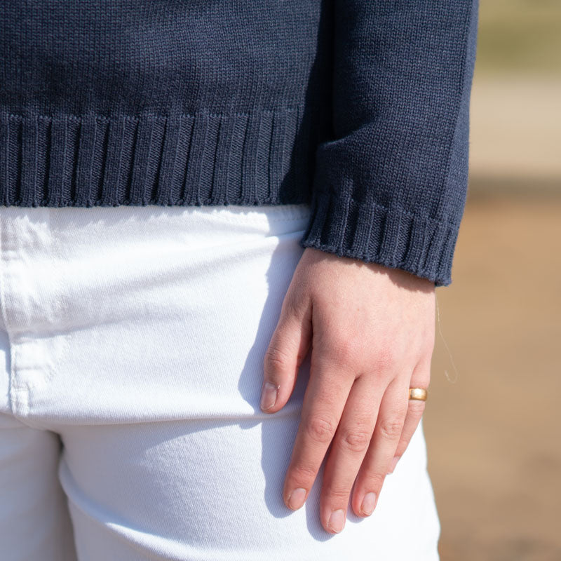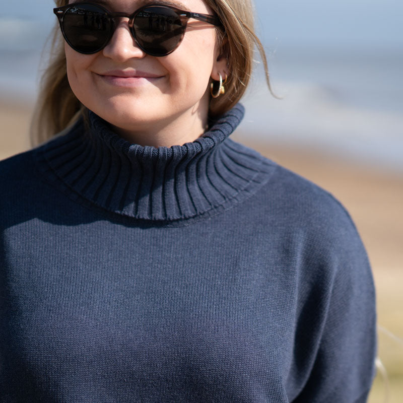 COLLEN & CLARE Zuri Cotton Roll Neck in Navy Marl