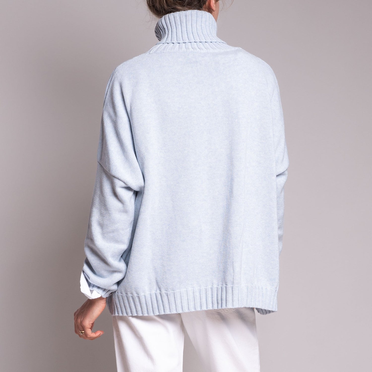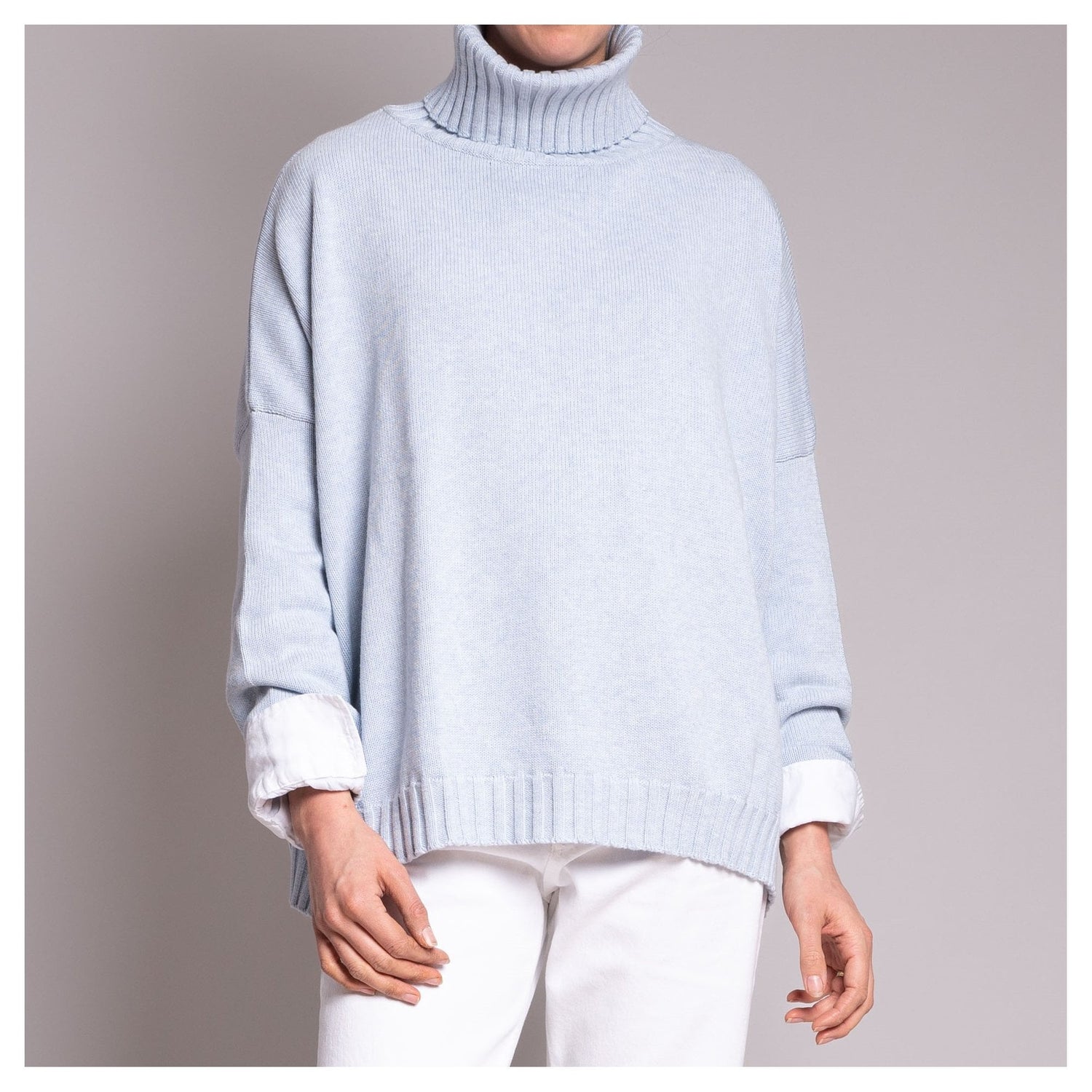 COLLEN & CLARE Zuri Cotton Roll Neck Knit in Pearl Blue Marl